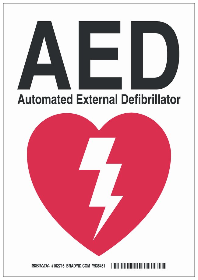Polystyrene First Aid Sign: AED AUTOMATED EXTERNAL DEFIBRILLATOR, Each