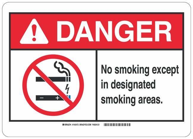 Improve workplace safety with proper signage and markings. This Brady™ corner hole mounted sign is a durable, clear and effective tool to clearly mark No Smoking areas.