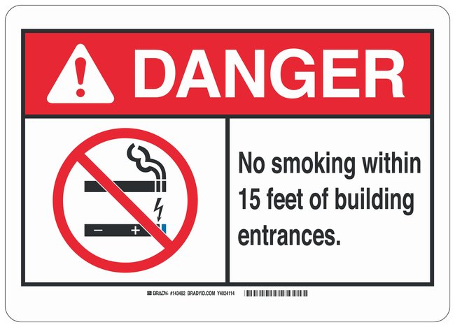 Polystyrene No Smoking Sign: NO SMOKING WITHIN 15 FEET OF BUILDING ENTRANCES, Each