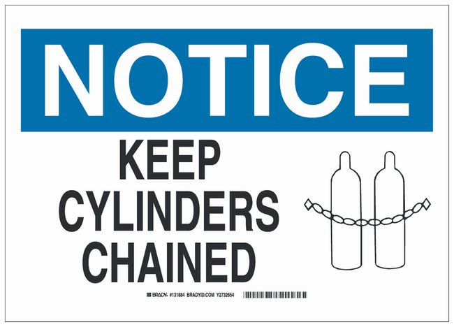 Polystyrene Notice Sign: KEEP CYLINDERS CHAINED, Each