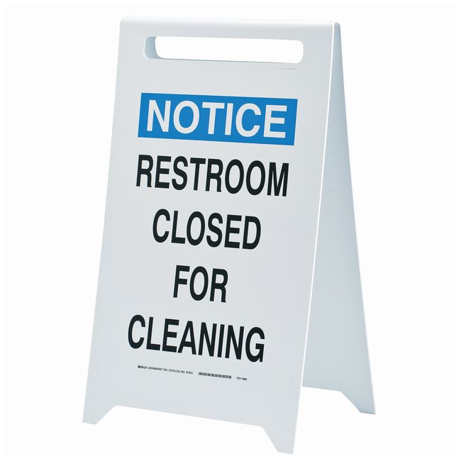 Improve workplace safety with proper signage and markings. This Brady™ floor standing mounted sign is a durable, clear and effective tool to mark personal hygiene and bathroom locations.