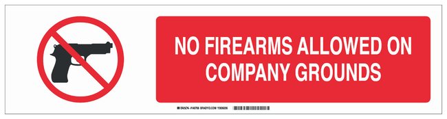 Polystyrene Safety Sign: NO FIREARMS ALLOWED ON COMPANY GROUNDS, Each