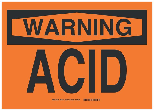 Polystyrene Warning Sign: ACID, black on orange, Each
