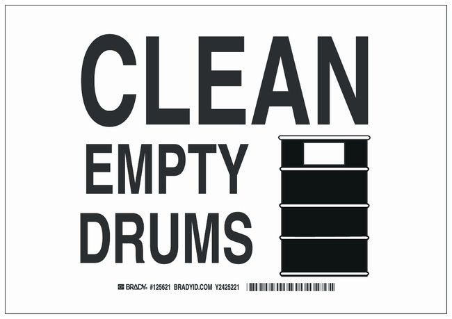 Polystyrene Warning Sign: CLEAN EMPTY DRUMS, Each