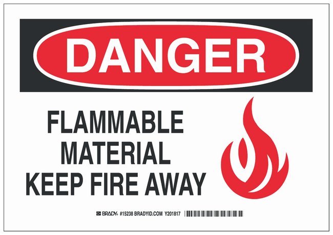 Polystyrene Warning Sign: FLAMMABLE MATERIALS KEEP FIRE AWAY, Each