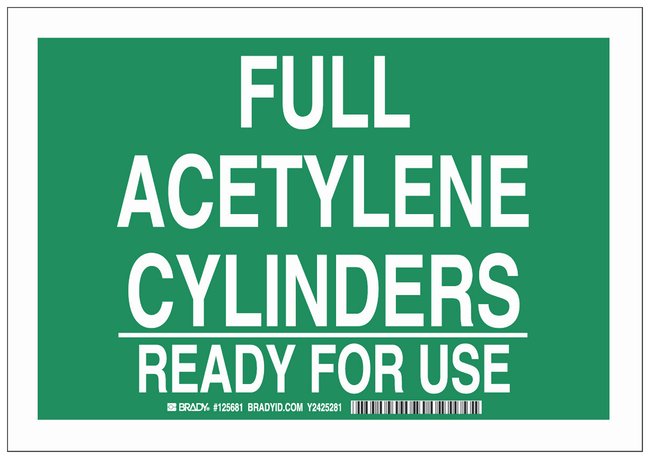Polystyrene Warning Sign: FULL ACETYLENE CYLINDERS READY FOR USE, Each