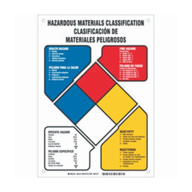 Polystyrene Warning Sign: HAZARDOUS MATERIALS CLASSIFICATION/ CLASIFICACION DE MATERIALES PELIGROSOS, Each