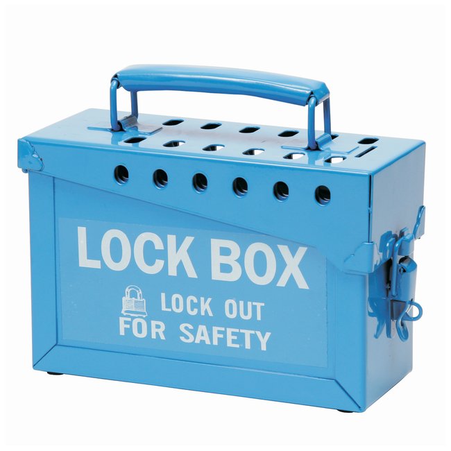 Develop a safety plan to protect workers and the worksite using lockout products. The Brady™ Portable Metal Lock Box, Blue is made of heavy-duty steel and is powder coated for extra rust resistance. Lock boxes require fewer locks and are lighter than hasps on delicate energry isolating devices like circuit breakers.