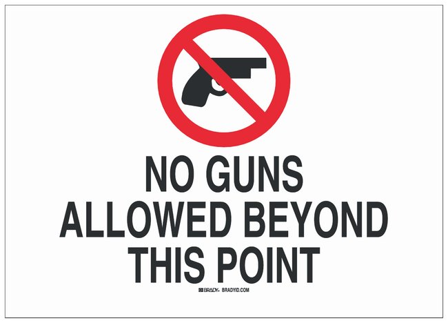 Prohibited Activity Sign: NO GUNS BEYOND THIS POINT, Each