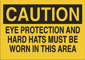 Protective Wear Signs: CAUTION - EYE PROTECTION AND HARD HATS MUST BE WORN IN THIS AREA, Each