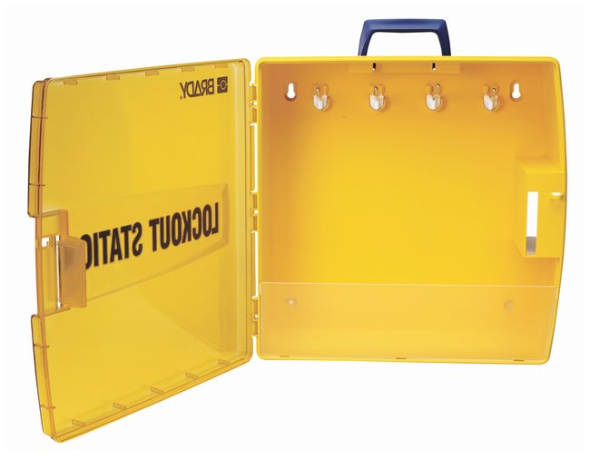 Lockout Stations are a great way to centralize lockout activity needs by organizing the tools, padlocks and padlock key in one location. The Brady™ Ready Access Lockable Lockout Station With (4) Key Hooks, Yellow is made of thermformed polypropylene for rugged durability. A semi-transparent hinged cover with locking mechanism protects contents from harsh environments and prevents unauthorized access.