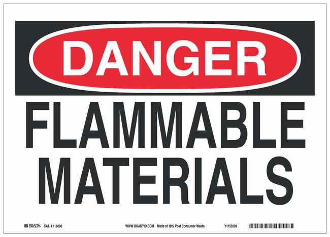 Recycled Film Adhesive Danger Sign: FLAMMABLE MATERIALS, Each