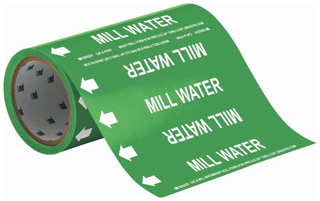 Provide clear notice to workers by identifying pipe contents and flow without the hassle of precise measurement around a pipe's diameter. Brady™ Roll Form Pipe Markers are made of Pressure Sensitive Vinyl and display text with clear color contrast.