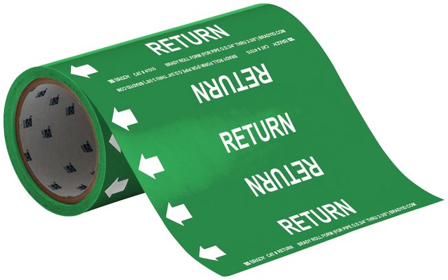 Ideal for identifying pipe content and flow without the hassle of precise measurement around the pipe's diameter. Brady Roll Form Pipe Marker is made of pressure sensitive vinyl