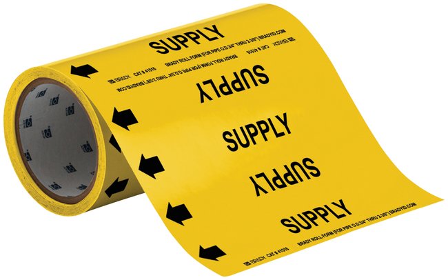Ideal for identifying pipe content and flow without the hassle of precise measurement around the pipe's diameter. Brady Roll Form Pipe Marker is made of pressure sensitive vinyl