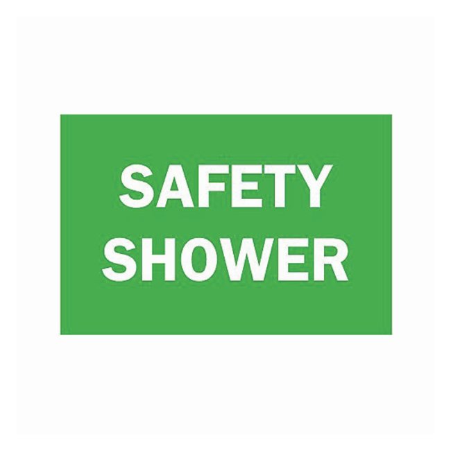 Bright colors and bold text provide high visibility to critical messagesLegend: SAFETY SHOWERWhite on GreenAvailable in different sizes and materialsB-120Premium Fiberglass: reinforced polyester sign panel with protected graphicsB-401Plastic — high-impact polystyreneB-302Self-sticking polyester — surface printed polyester, polyester overlaminate and sensitive acrylic