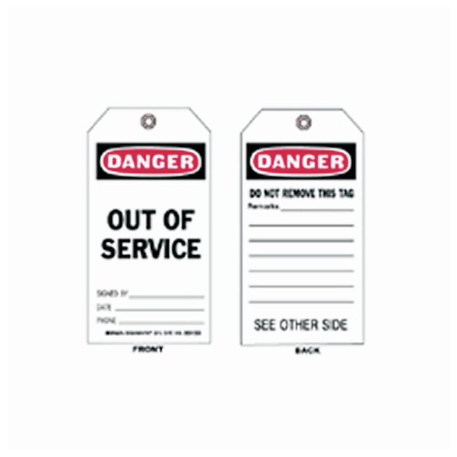 B-851 Rigid Economy Polyester with brass grommets, exceeds OSHA's 50 lb pull force requirement for Tagout devicesTextured write-on surface allows for authorized signatures, dates and other special instructionsSeal and protect your written message with a clear adhesive overlayWithstands moisture, grease and dirt