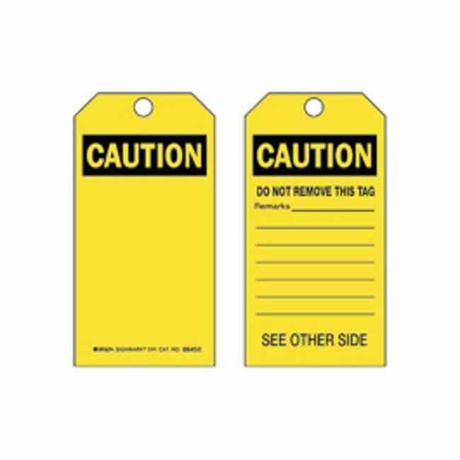 B-851 Rigid Economy Polyester with brass grommets, exceeds OSHA's 50 lb pull force requirement for Tagout devicesTextured write-on surface allows for authorized signatures, dates and other special instructionsSeal and protect your written message with a clear adhesive overlayWithstands moisture, grease and dirt