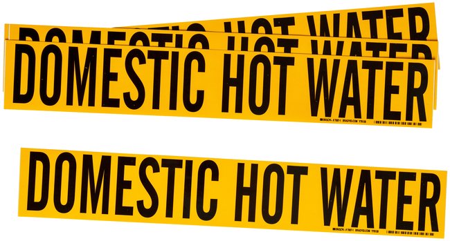 Self-Sticking Vinyl Pipe Markers, Legend: DOMESTIC HOT WATER, For the identification of piping system contents when used with Directional Flow Arrow Tape, Each