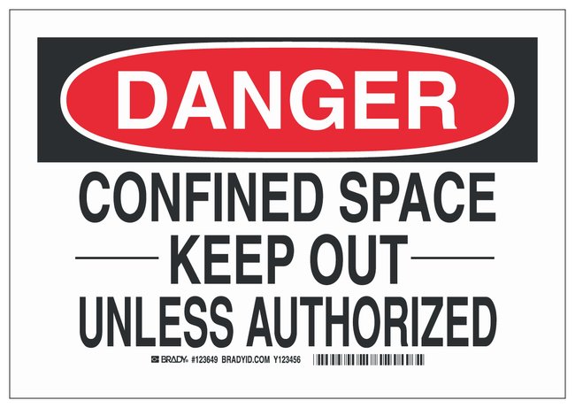Sign: CONFINED SPACE -----KEEP OUT----- UNLESS AUTHORIZED, Each