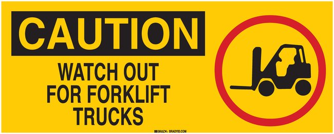 Signs: CAUTION: WATCH OUT FOR FORK LIFT TRUCKS (W/PICTO), Each