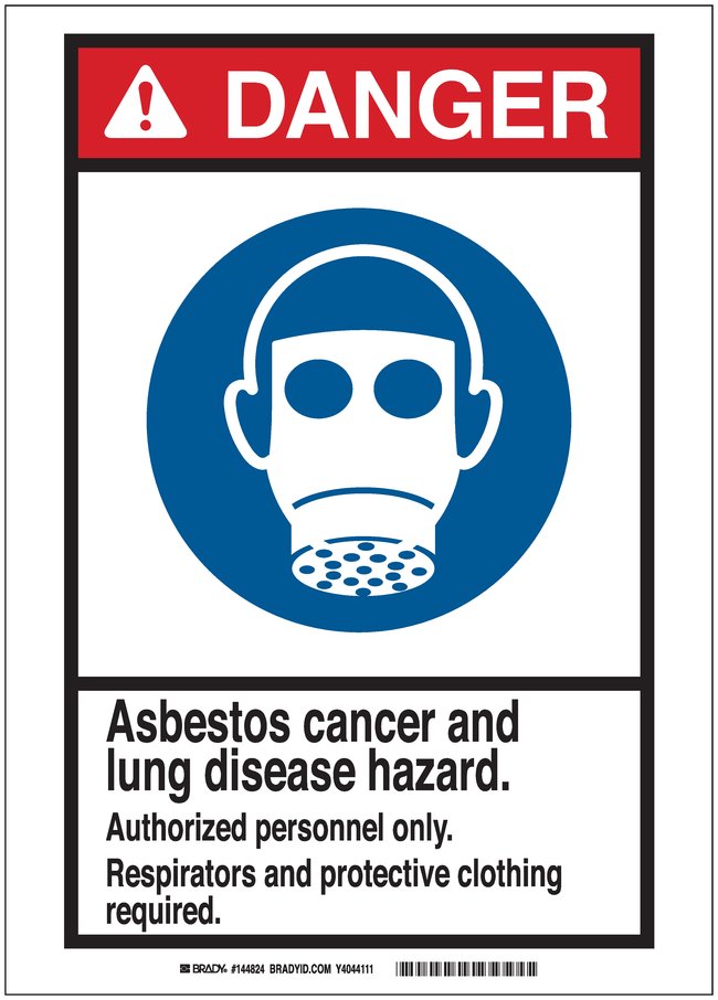 Signs: DANGER: ASBESTOS CANCER AND LUNG DISEASE HAZARD DO NOT DISTURB WITHOUT PROPER TRAINING AND EQUIPMENT, Each