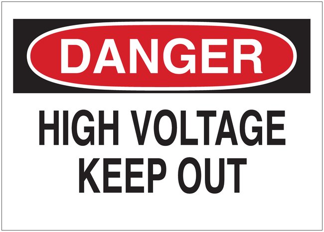 Signs: DANGER: HIGH VOLTAGE KEEP OUT, DANGER: HIGH VOLTAGE—KEEP OUT signs identify electrical hazard and high voltage areas throughout a facility, Each