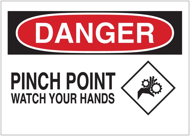 Signs: DANGER: PINCH POINT WATCH YOUR HANDS (W/PICTO), Each