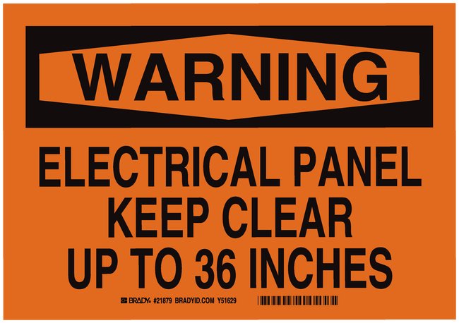 Signs: WARNING: ELECTRICAL PANEL KEEP CLEAR UP TO 36 INCHES, Each