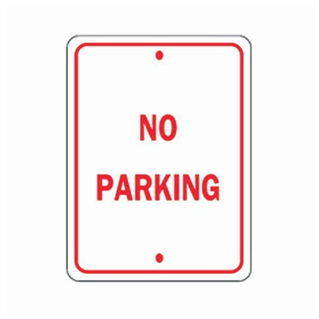 Quick and easy way to communicate restricted parking areas to employees and visitorsDesigned to meet MUTCD specificationsSign reads NO PARKINGRed on White
