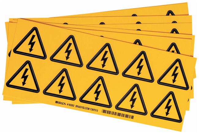 Feature pictograms that indicate dangerous electrical voltage. Brady™ Warning Labels will adhere to any clean, dry surface and are available in a variety of sizes.