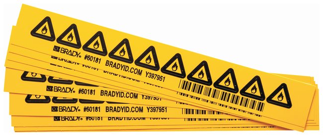 Feature pictograms that indicate hazards for flammable material. Brady™ Warning Labels will adhere to any clean, dry surface and are available in a variety of sizes.