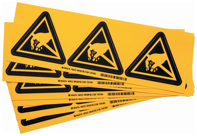 Feature pictograms that indicate static sensitive devices. Brady™ Warning Labels will adhere to any clean, dry surface and are available in a variety of sizes.