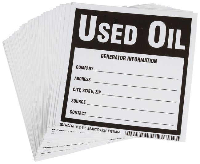 Waste Disposal Label, USED OIL, Use to easily identify and sort waste. Waste Disposal Label, USED OIL is made of vinyl material, Pack of 100
