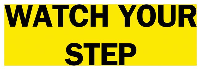 Bright colors and bold text provide high visibility to critical messagesLegend: WATCH YOUR STEPBlack on YellowB-302Self-sticking polyester — surface printed polyester, polyester overlaminate and sensitive acrylic