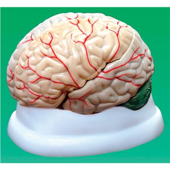 This is an excellent life-size human brain model for students. It is dissectible into 3 parts and shows all major parts of the brain as well as some vascular structures. It comes with a sturdy base and a detailed key.