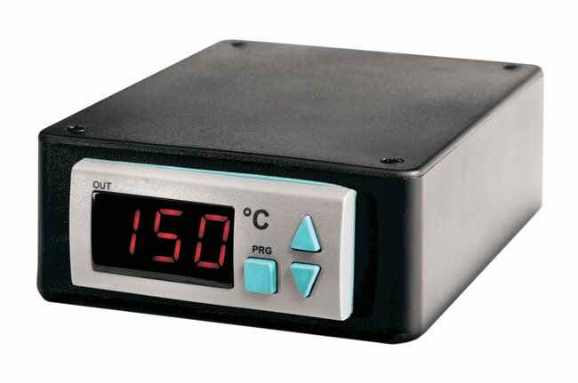 Affordable and compact, it is compatible with a wide range of heaters and applications. Set-point value can be adjusted by using simple interface.Height: 1.75 in.(45mm)Length: 5.5 in. (140mm)5-foot power cord10-Amp Fused Output @ 120V/240VOn/Off Temperature ControllerTemperature Range Control: 32-999°F (0-600°C)CertificationsCE marked