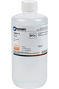 1000 ppm (µg/mL) Bromate for IC is a 500mL certified reference material set in a water matrix for stability. This bromate standard is Traceable to NIST and manufactured in accordance with our stringent Quality Assurance guidelines. One year Expiration Date.