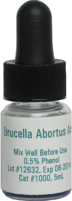Antigen^ Brucella Abortus Febrile Antigen, intended for the detection of bacterial agglutinins associated with a bacterial infection, For professional use only, Size: 5 mL Vial