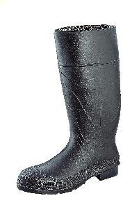 Black Economy Boot^ 16 inch knee boot. SAFE-TOE steel toe construction. Anti-Skid sole and heel. FOOT FORM contour insole. Made in U.S.A. Size: 5