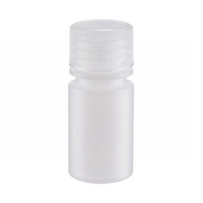 Leak-Resistant Bottle, LDPE, Narrow Mouth, with Cap Attached, 15mL^ Screw cap size: 20-410. Lightweight bottle is ideal for general laboratory use. Designed with a special pour lip to facilitate safe dispensing and prevent sample from running down the outside of the container. Leak-resistant.