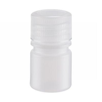 Leak-Resistant Bottle, LDPE, Narrow Mouth, with Cap Attached, 8mL^ Screw cap size: 20-410. Lightweight bottle is ideal for general laboratory use. Designed with a special pour lip to facilitate safe dispensing and prevent sample from running down the outside of the container. Leak-resistant.