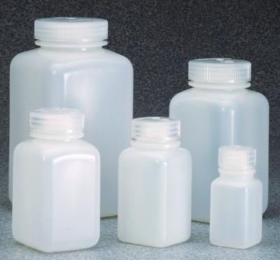 Nalgene Wide-Mouth Square Bottles - HDPE, Bulk Pack, Thermo Scientific^ Square shape saves shelf space, durable uniform walls are resistant to splitting or puncturing, leak proof, square shape saves shelf space, wide-muth for easy filling and pouring.