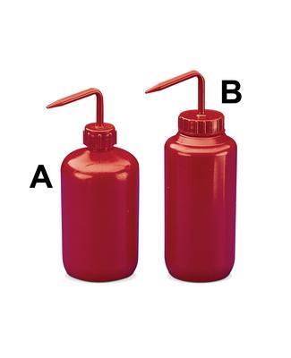 Red Narrow Mouth Wash Bottle^ These LDPE bottles come with PP closures and are vividly colored to aid in the identification of hazardous contents. Red. 6 per bag. Capacity: 500ml. Cap size: 28mm.