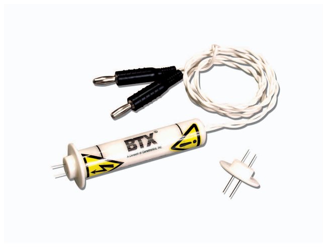 Consists of reusable array handle and sterile, disposable two-needle arrayEnables simple, inexpensive, safe direct injection of muscle tissue for plasmid DNA deliveryCompatible with ECM™ 830, ECM 2001, ECM 630Supplied in convenient kit with Delrin handle and 20mm stainless-steel needle array (pack of 6), or order components separately (match handle size to needle array size)Two Sizes5mm array and handle recommended for small muscle masses such as mouse tibialis10mm size suitable for larger muscle masses such as rat gastronome
