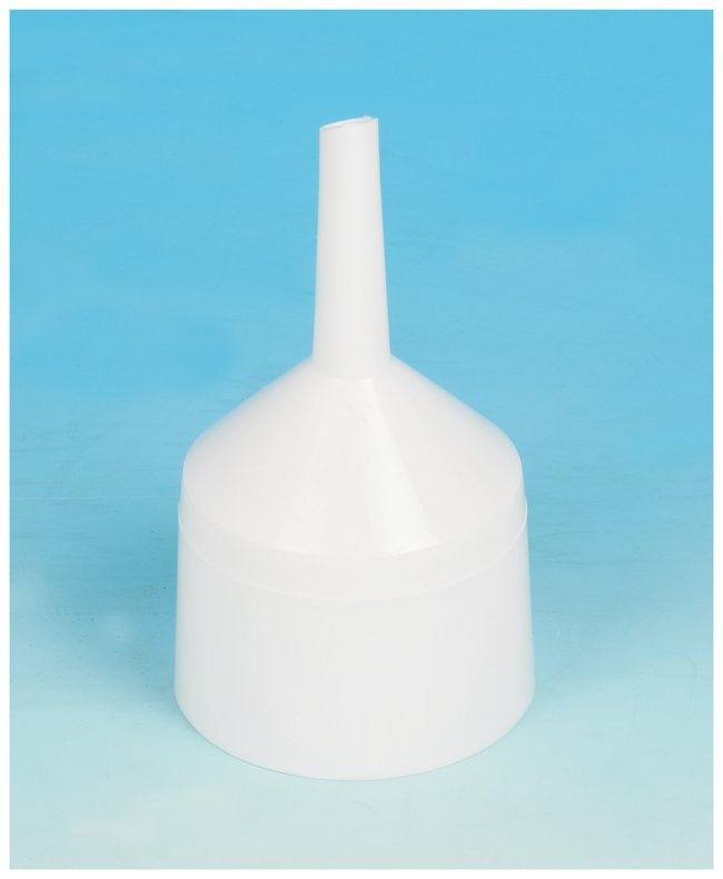 Two piece polypropylene Buchner funnels are light weight and autoclavable. The top portion of the funnel cone is fitted with the lower portion of the funnel cone forming a vacuum seal that does not require greasing. Bottom portion of the funnel cone has a perforated filter plate.