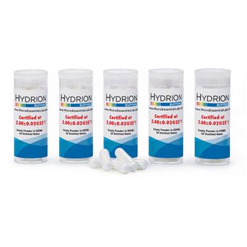 Specifications Hydrion Buffer Capsules are perfect for quick and easy pH meter calibration. When mixed with distilled or de-ionized water, a Hydrion Buffer Capsule will accurately produce 100 ml.of solution at pH 2.00. Hydrion Buffers are free flowing soluble powders that prepare clear or color safe solutions in minutes. A built-in preservative ensures long-lasting solutions " "color-keyed " " to easily identify the ph value of the buffer solution.Each carton contains 5 vials, with 50 capsules per carton. Each capsule produces 100ml.of solution.Empty the contents of a Hydrion pH Buffer Capsule into 100 ml. of de-ionized or distilled water.Storage and Shelf Life: When stored at room temperature in clean airtight bottles, prepared solutions will last for three weeks. When added to the solution, Hydrion Buffer Preservative will protect prepared solutions for up to three months.Unprepared, packaged Hydrion Buffer Salts have a shelf life of five years.All HYDRION BUFFER SALTS ARE DIRECTLY TRACEABLE TO NIST STANDARDS AND CERTIFIED TO ± 0.02 pH UNITS AT 25°C.