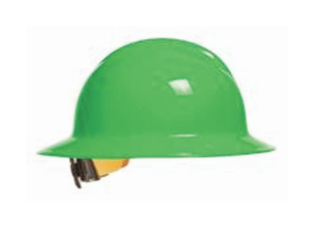 Hard hat equipped with a wide-profile shell that offers additional protection from sun, glare, and splashes in industrial applications.