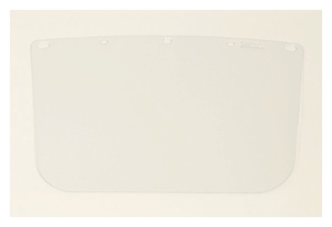 Clear visors accommodate safety spectacles, goggles, and respirators to protect face from numerous industrial hazardsFlat acetate visors are for chemical applications and light impact protectionHeat-formed polycarbonate visors are for high-heat operations with little or no chemical exposure, and are curved for easy attachment and reduced stress crackingVisors are 15 in. wide (20.3cm) and available in 6, 8, and 10 in. lengths (15.2, 20.3, 25.4cm)Order InfoDo not use any faceshield unless suitable primary eye protection is used.ComplianceMeets ANSI/ISEA Z87.1 and ANSI Z87 standards.