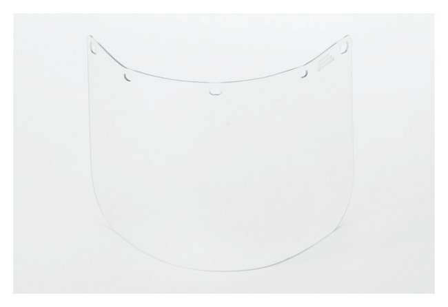 Clear visors accommodate safety spectacles, goggles, and respirators to protect face from numerous industrial hazardsFlat acetate visors are for chemical applications and light impact protectionHeat-formed polycarbonate visors are for high-heat operations with little or no chemical exposure, and are curved for easy attachment and reduced stress crackingVisors are 15 in. wide (20.3cm) and available in 6, 8, and 10 in. lengths (15.2, 20.3, 25.4cm)Order InfoDo not use any faceshield unless suitable primary eye protection is used.ComplianceMeets ANSI/ISEA Z87.1 standards.